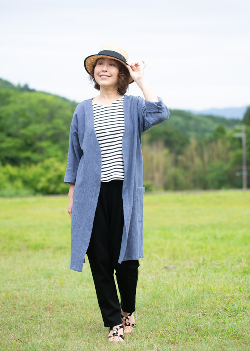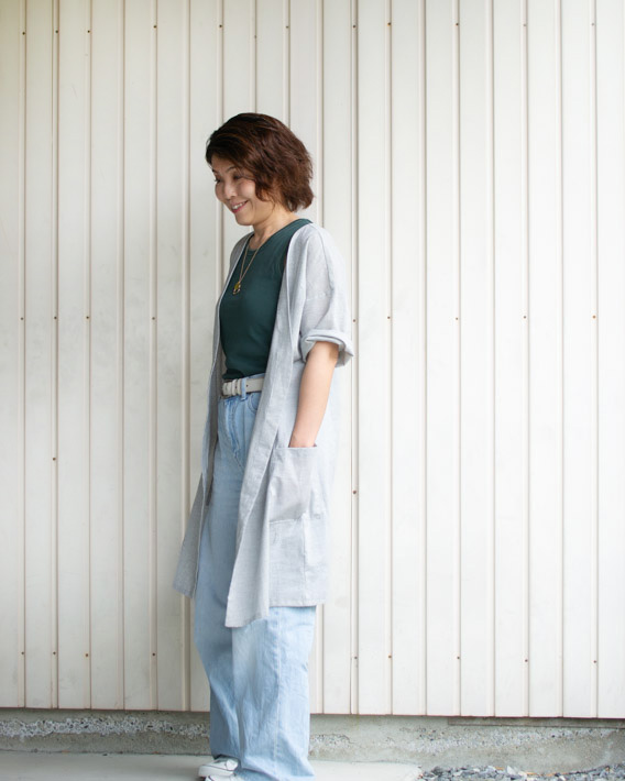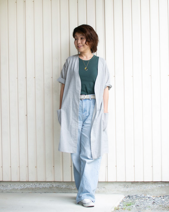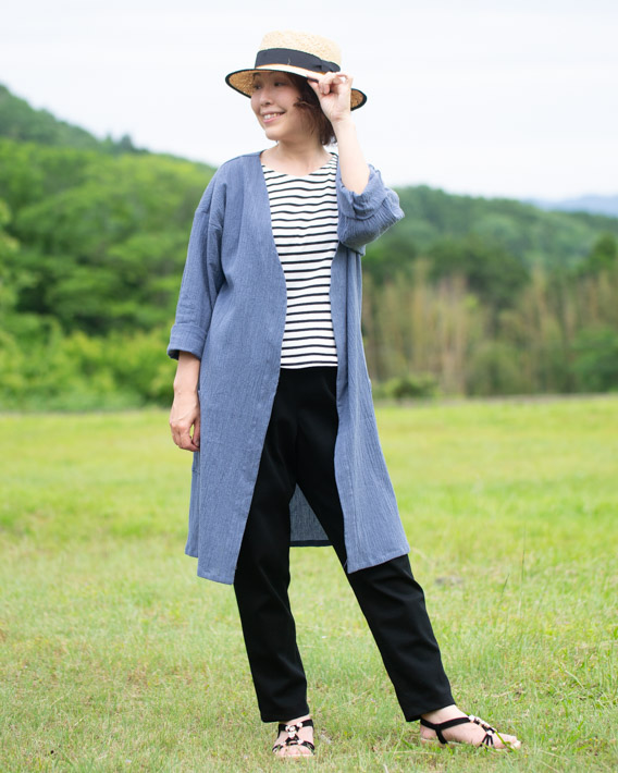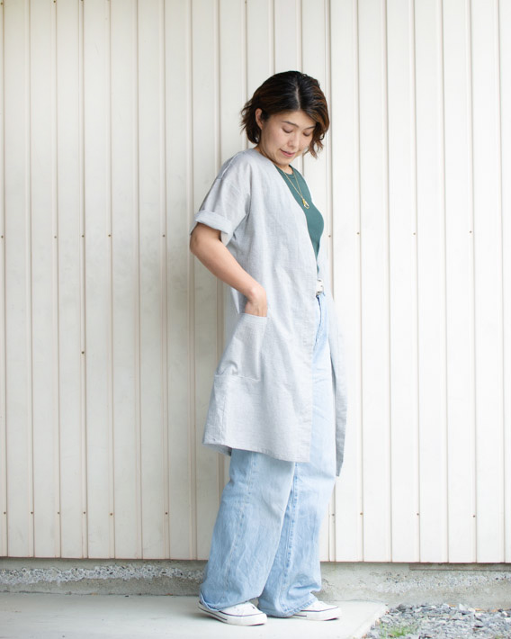 【布帛】ふんわり優しいオーガニックシングルガーゼボーダー(ライトグレー)