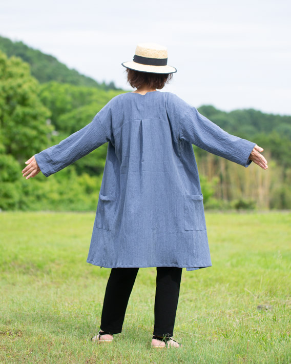 【布帛】さらっと夏でも涼しいデニムカラー楊柳(ネイビーブルー)