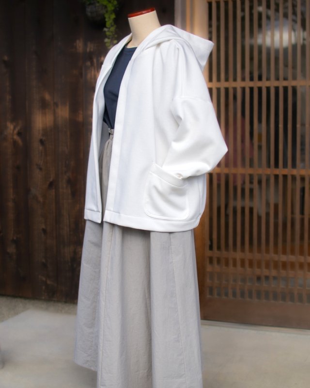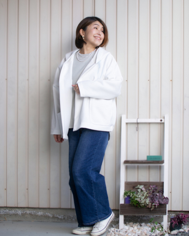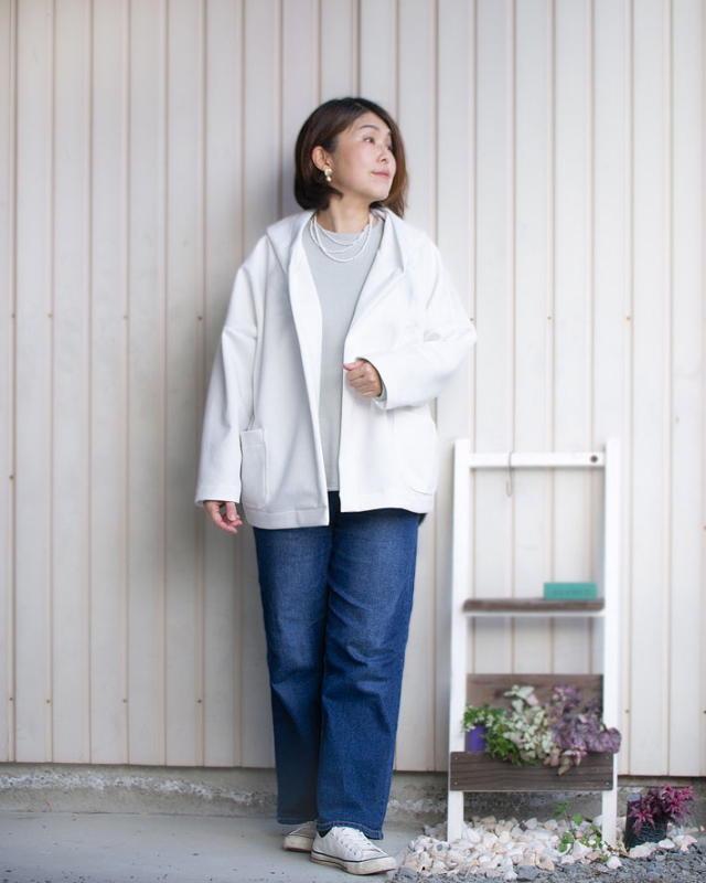 生地にほどよい貼りがあるからシルエットが崩れにくく、カジュアルなのに羽織るだけできちんと感がでます。