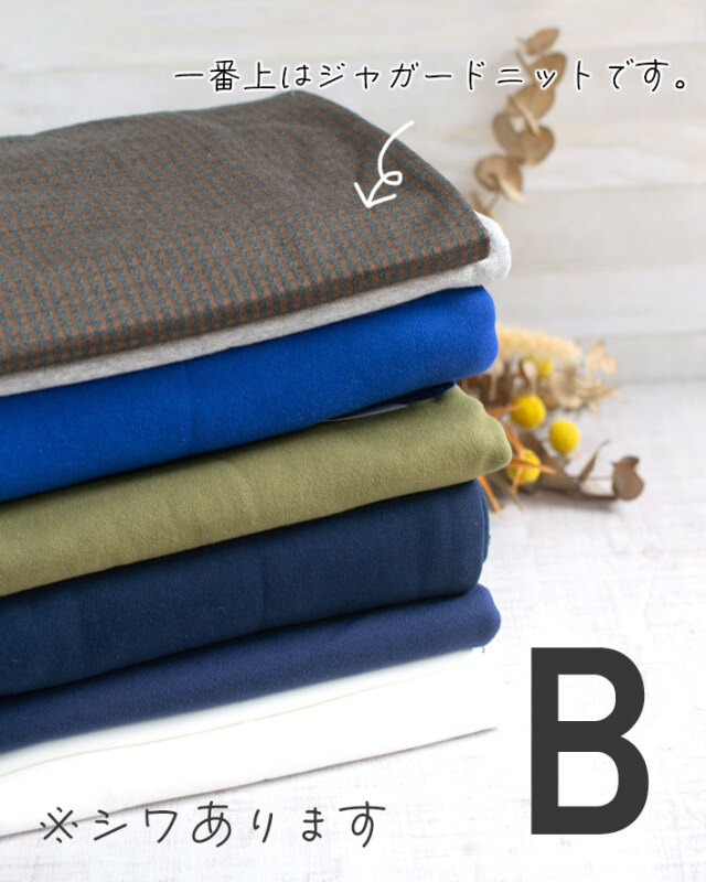 今までに販売した裏毛ニットのハギレをセットにしました。