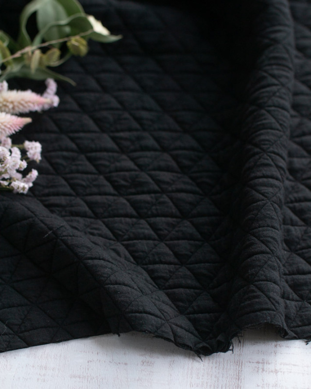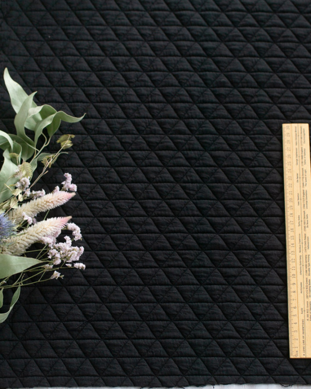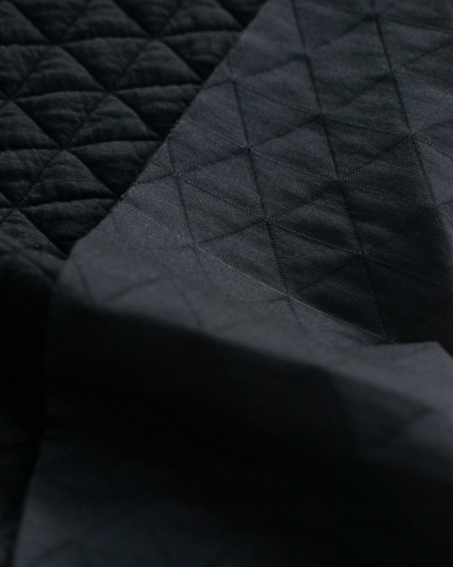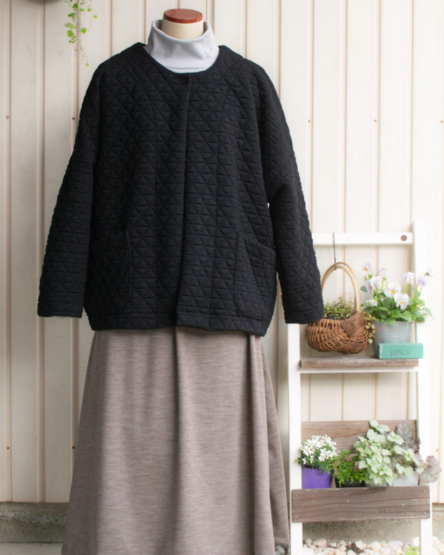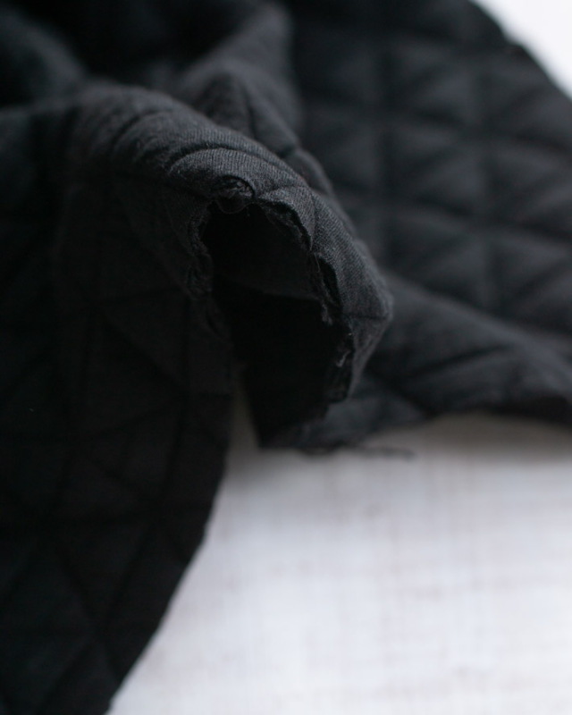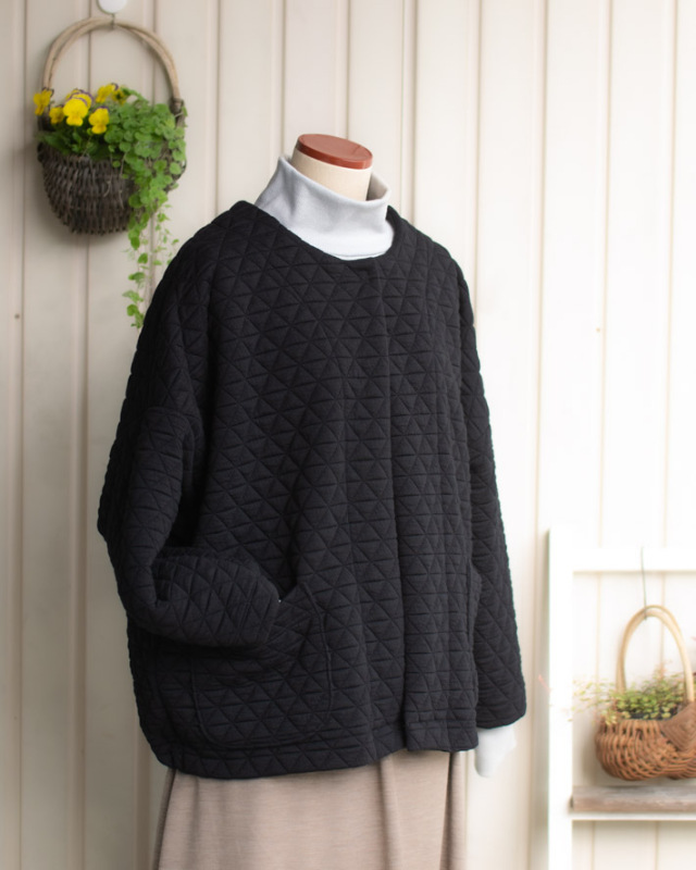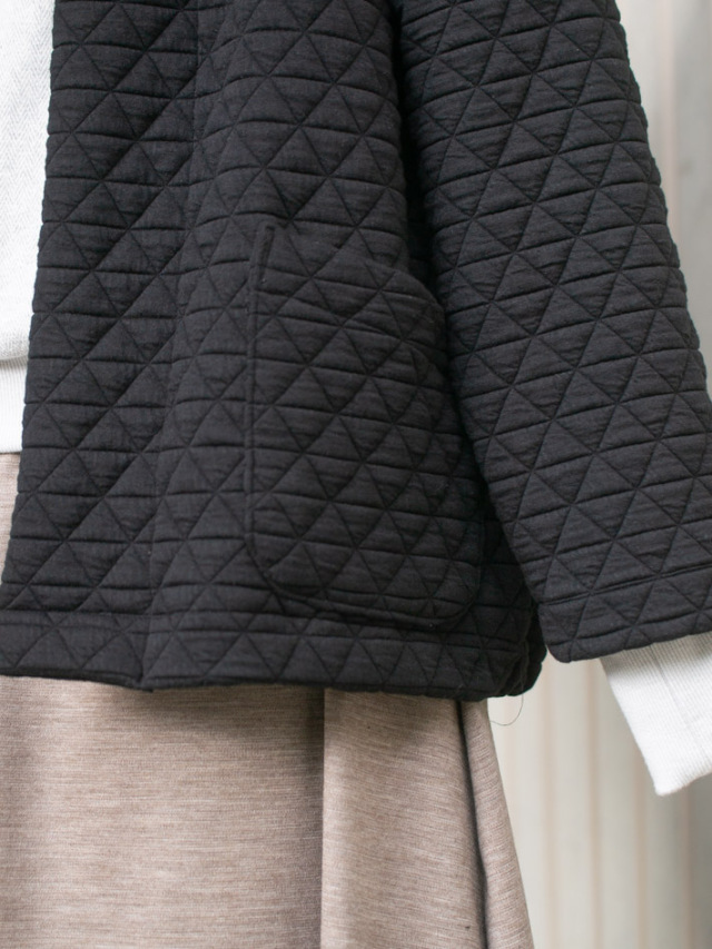 | 品名 | 【ニット】しっとり厚みのトライアングル模様のふっくらストレッチキルトニット(ブラック) |