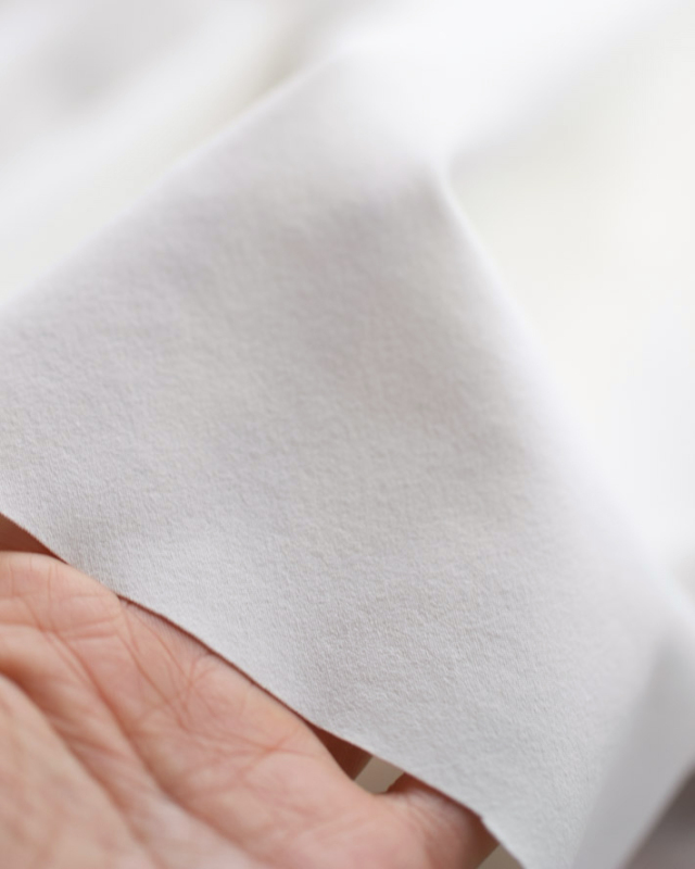 Tシャツ地ほどの軽やかな厚みときれいめな表情で仕立て映えする素材感。