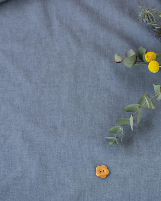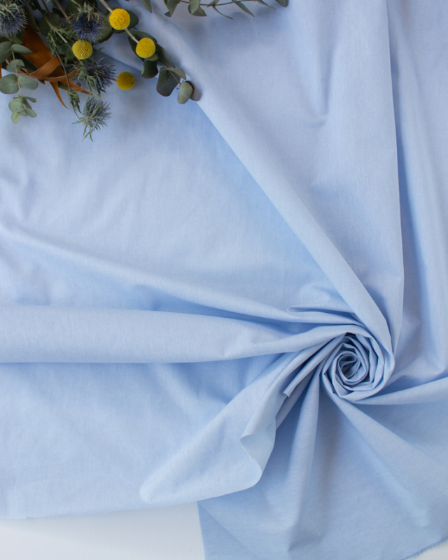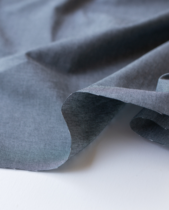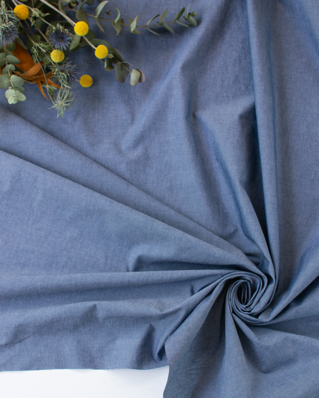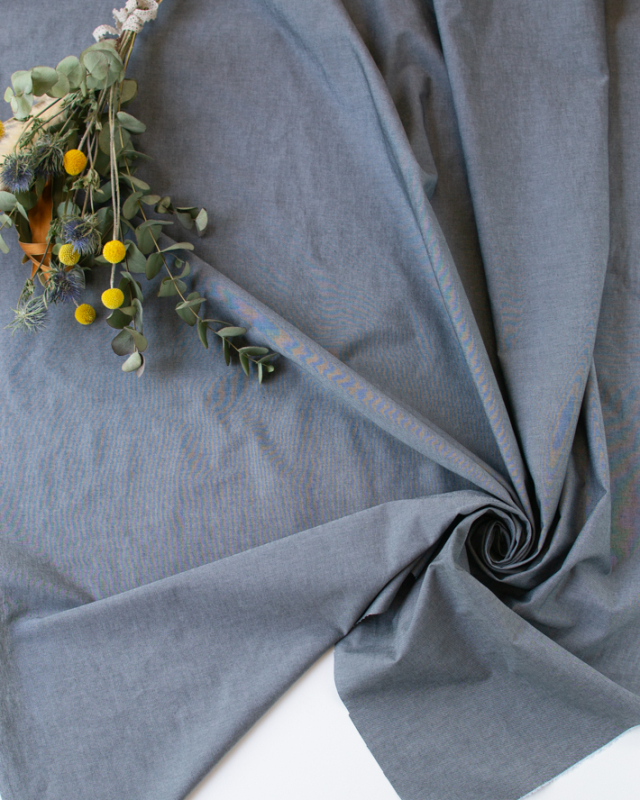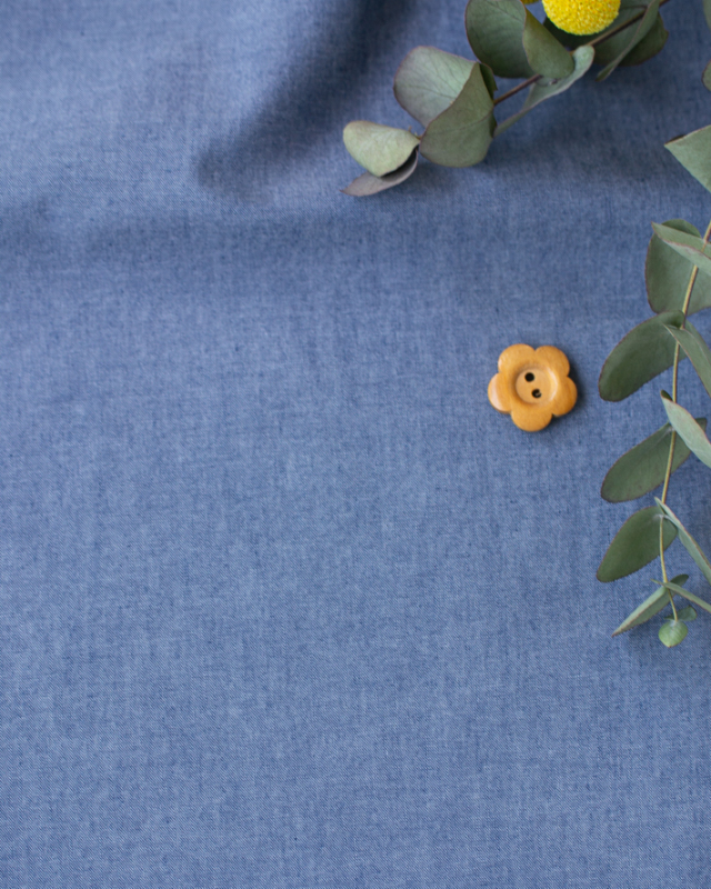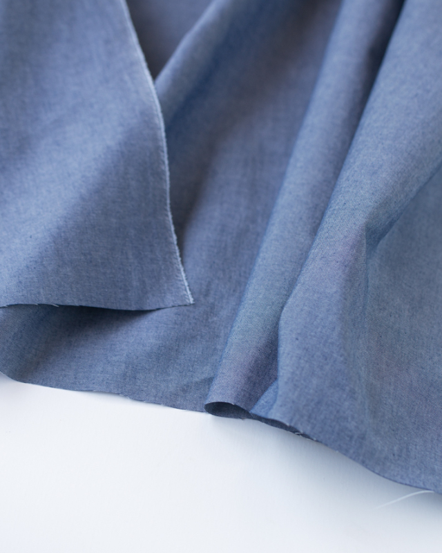 さらっと軽い薄手のダンガリー。ほどよい張り感があり、形をきれいに出したいシャツや薄手アウターにぴったりです。杢っぽいデニム風の表情で春夏に使いやすく、ハーフパンツや帽子・エプロンなどの小物にもおすすめ。
