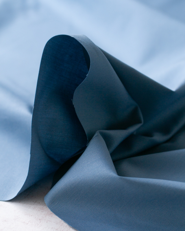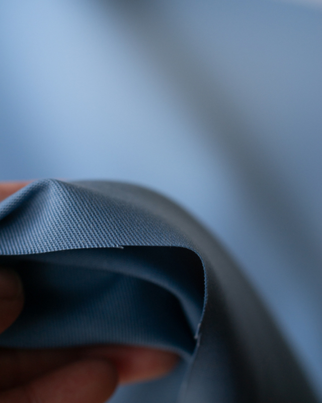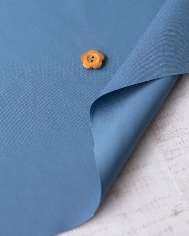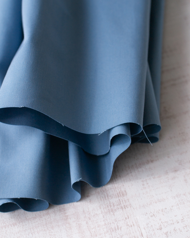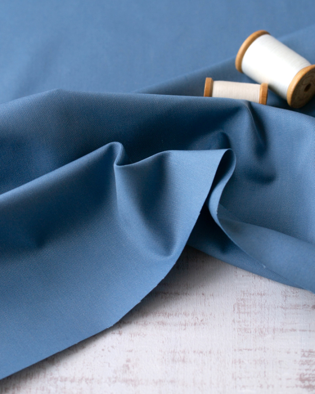 くすみのある落ち着いたブルーが、カジュアルコーデをクールにかっこよく見せてくれる生地です。