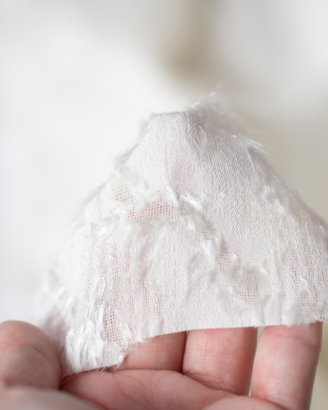 少し透け感があるので、ブラウスなら軽やかに、スカートなら裏地を付けると安心です。