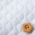 表面はなめらかでやさしい肌ざわりのスムースニット、そこにキルト加工をほどこしたふっくら感のある生地です。見た目にもやわらかく、ぺらっとした頼りなさがなく、きちんとした厚みとほどよいボリュームがあります。片面はわたのままなので、お気に入りの生地と組み合わせてベッドマットや、わんちゃん用のマットなどを作るのにもおすすめ。インテリアまわりに使うと、やさしい雰囲気に仕上がります。