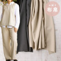 やわらかくくったりとしていて、手にするとするりと落ちるような質感の生地です。落ち着いた雰囲気があり、カジュアルすぎず大人っぽく仕上がるのも魅力です。横方向にやさしくのびるので動きやすく、ほどよい厚みがあるためボトムスづくりにぴったり。少し重みがあるので、広がりの大きい形よりも、すっきりとしたシンプルなパンツにすると、この生地らしいきれいな雰囲気を楽しんでいただけます。