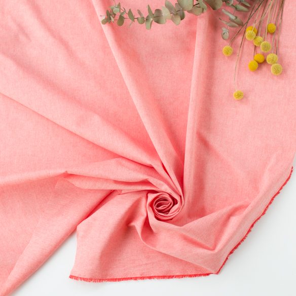 | 品名 | 【布帛】綿に近い肌ざわりのリサイクルポリエステル混ダンガリー(ピンクっぽい赤) オーダーカット |