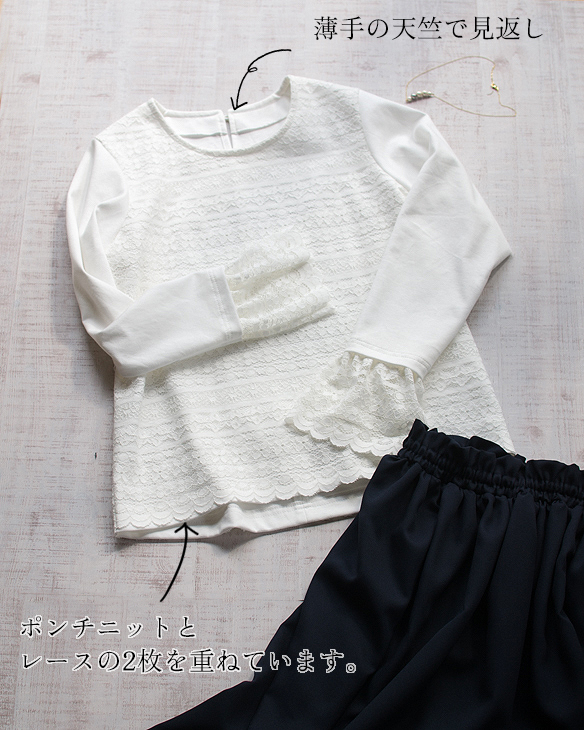 レースと重ねてTシャツを作りました。