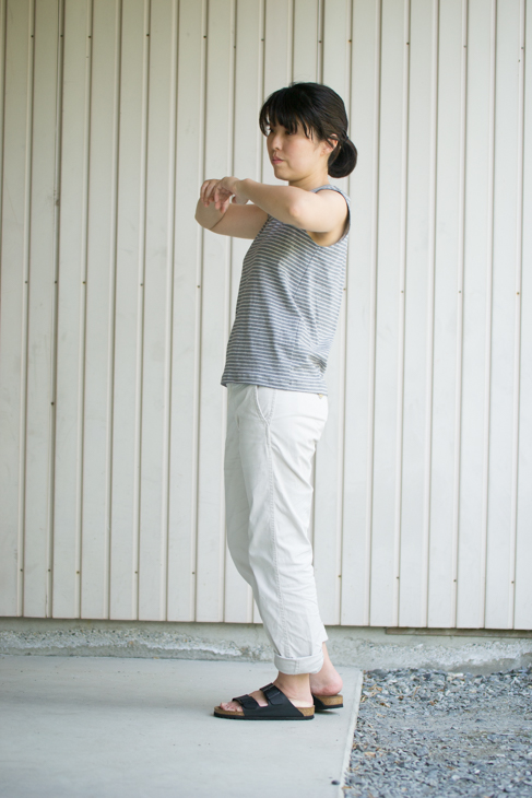 袖ぐりは小さめにしました。