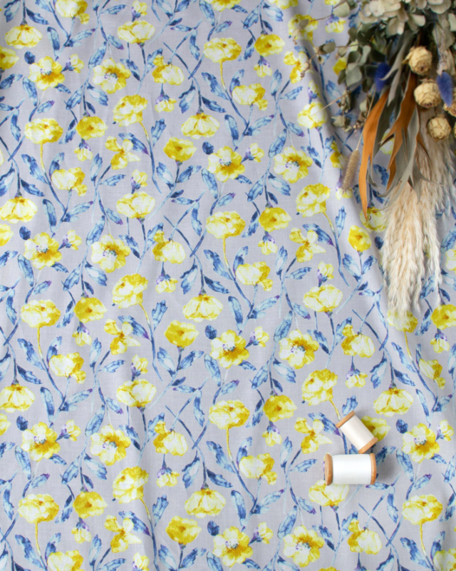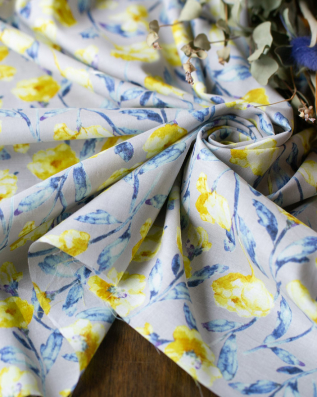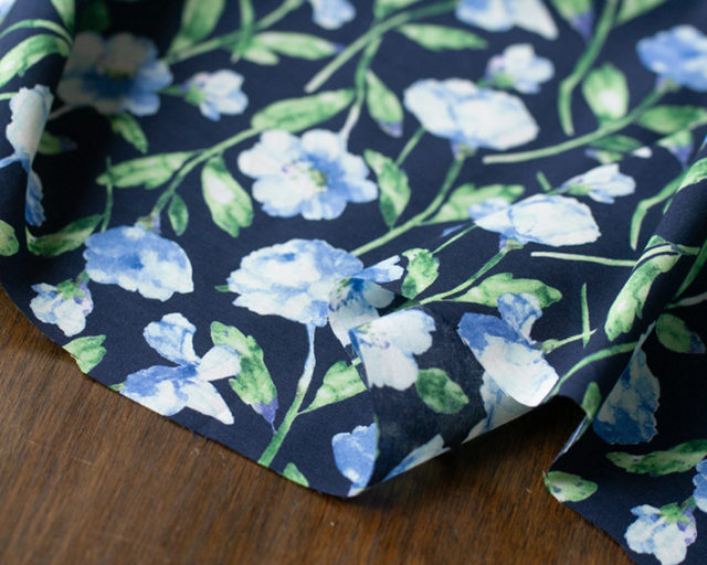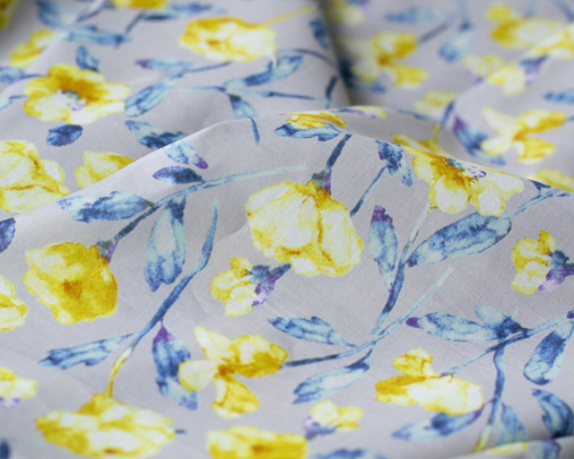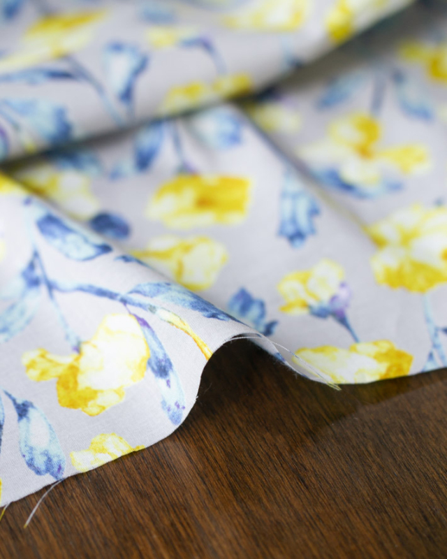 水彩画風の淡いお花がプリントされた生地です。