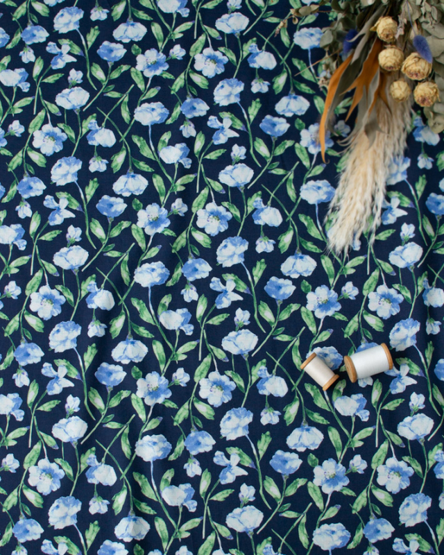 ネイビーベースに水色の花の2色です。