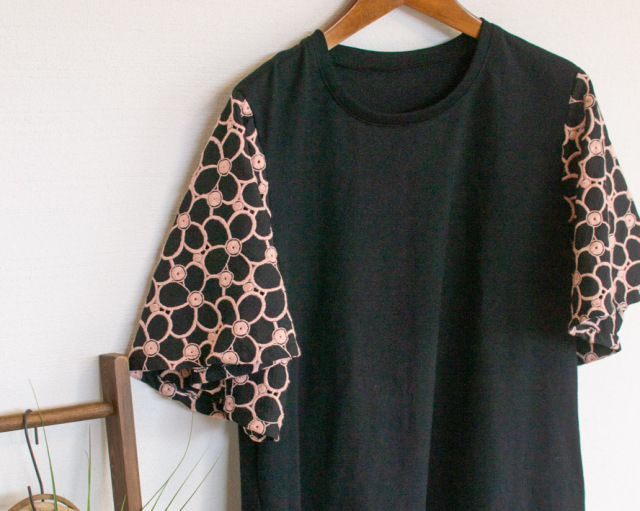 袖部分はベース生地がブラック、刺繍がピンクです。